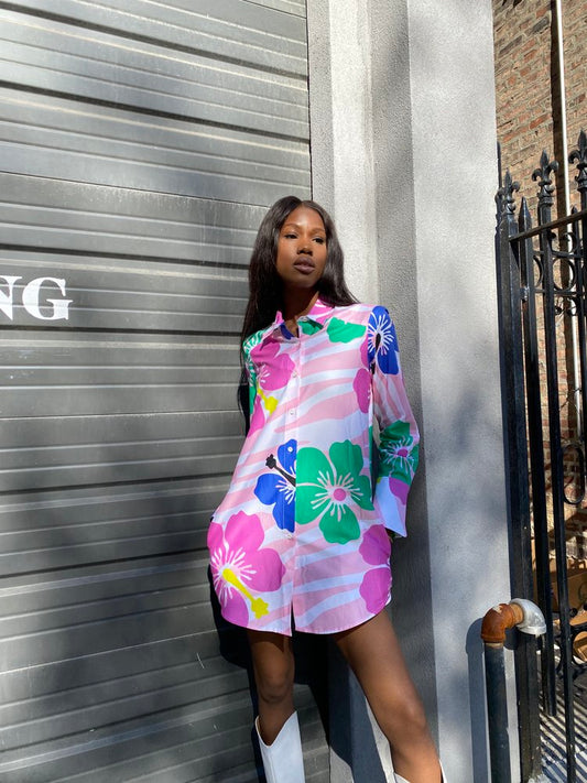 TATI FLORAL PRINTED SHIRT DRESS